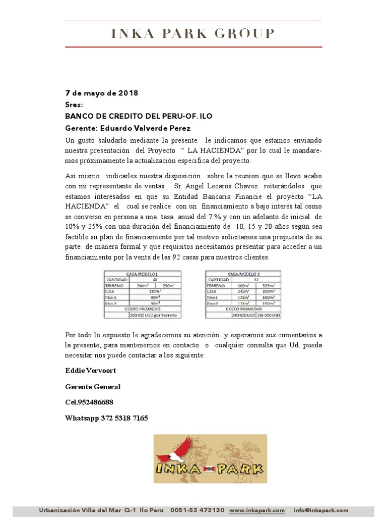 Carta Presentacion Agente Bcp Bancos Economias