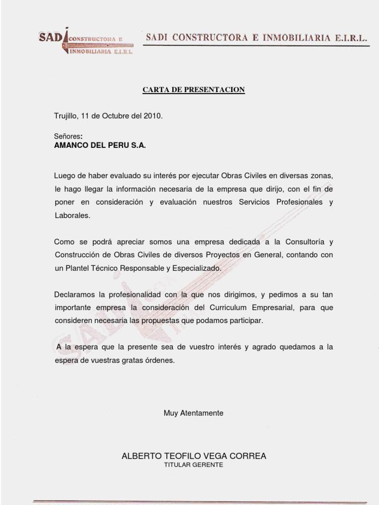 CARTA DE PRESENTACION De nuestra mayor consideracin y estima personal. Para dar a conocer algn tipo de oferta o demanda de servicios que presta una empresa en concreto normalmente se hace uso de las denominadas cartas de servicios. Estudio Contable Sanchez Y Asociados empresa creada para brindar servicios Contables les damos la bienvenida informando a todos ustedes sobres nuestros servicios tecnicos y profesionales Llevamos la contabilidad de su empresa en forma externa con un alto nivel de confianza y eficiencia para que usted concentre sus.