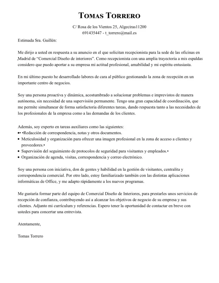 Ejemplo De Carta De Presentacion Para Hosteleria
