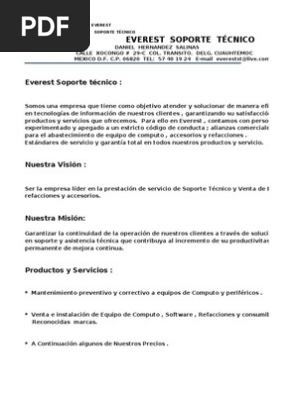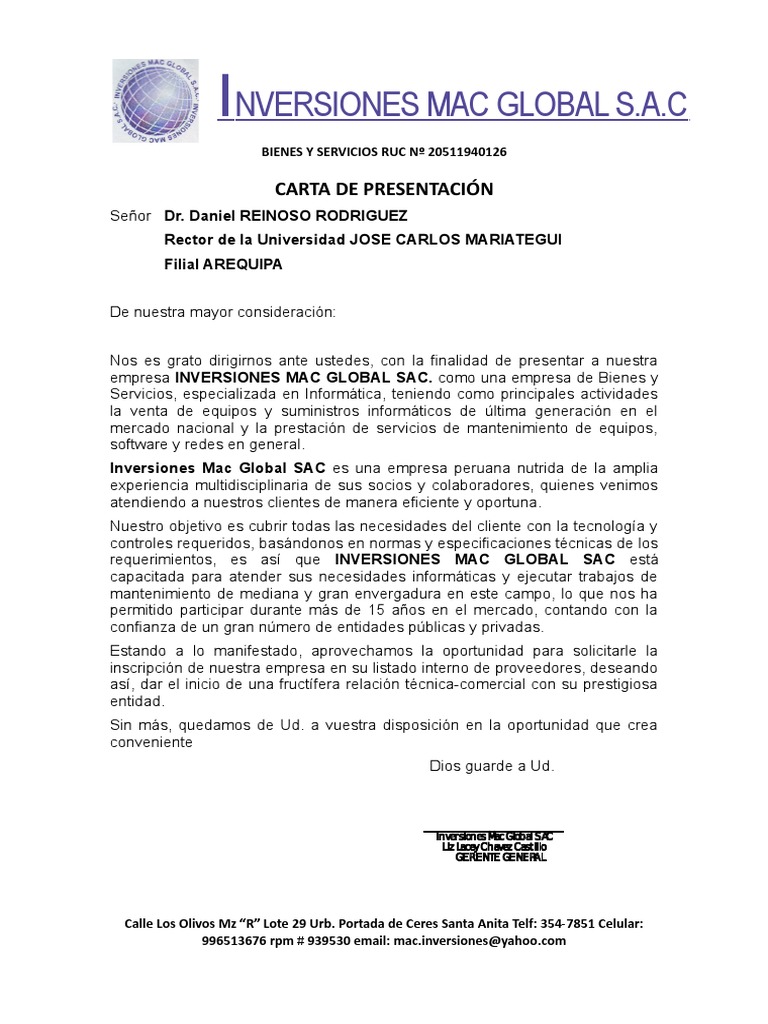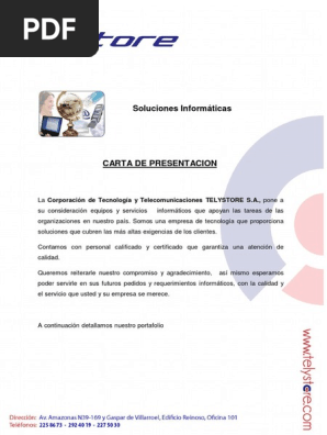Adems es importante tener en cuenta. Puerta Esperanza 361 La Serena en el puesto de tcnico informtico. Esta carta de presentacin se encargar de explicar el servicio que ofrece la empresa y los datos de contacto para solicitar los servicios.