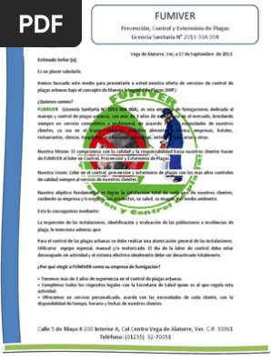 Con la creacin de estas empresas de fumigacin y control de. Esta empresa nos ofrece el servicio de fumigacin de nuestras. Modelo de carta de presupuesto y cotizacion.