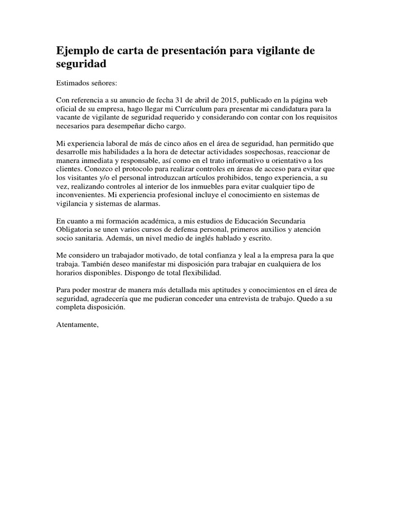 Ejemplo De Carta De Presentacion Para Vigilante De Seguridad Wilmer Informatica Y Tecnologia De La Informacion Seguridad