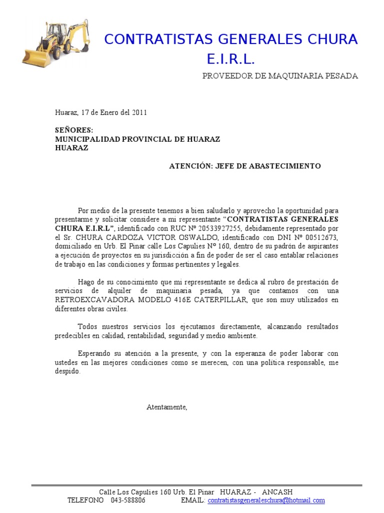 Carta Presentacion A La Municipalidad Provincial De Huaraz