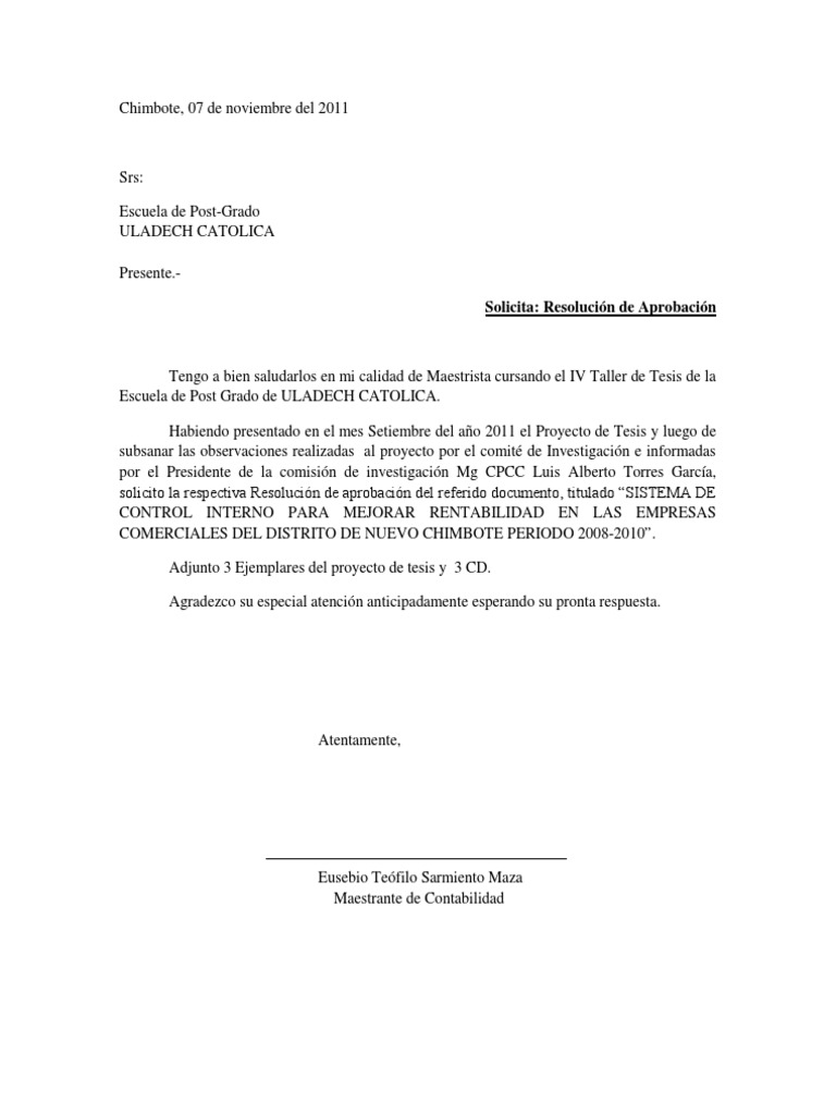 Carta De Solicitud De Aprobacion Tesis