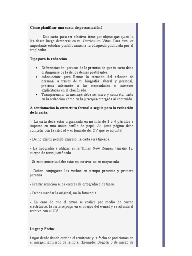 A continuacin te dejo unos consejos bsicos para preparar la. Inicio del email. Si las instrucciones dicen que incluya una carta de presentacin escriba una o no ser considerado para la vacante.